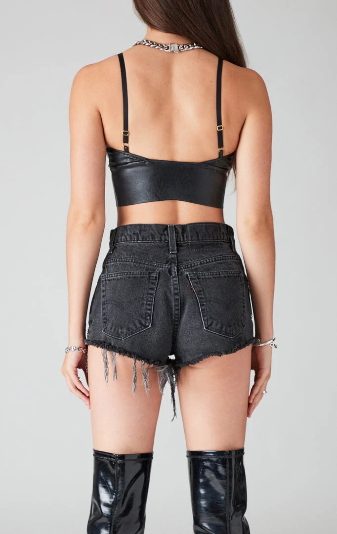The Faux Leather Bralette by Commando. This crop top features four-way stretch that allows for optimal fit and comfort. With its leather look & cropped length, you can pair this top with almost anything.