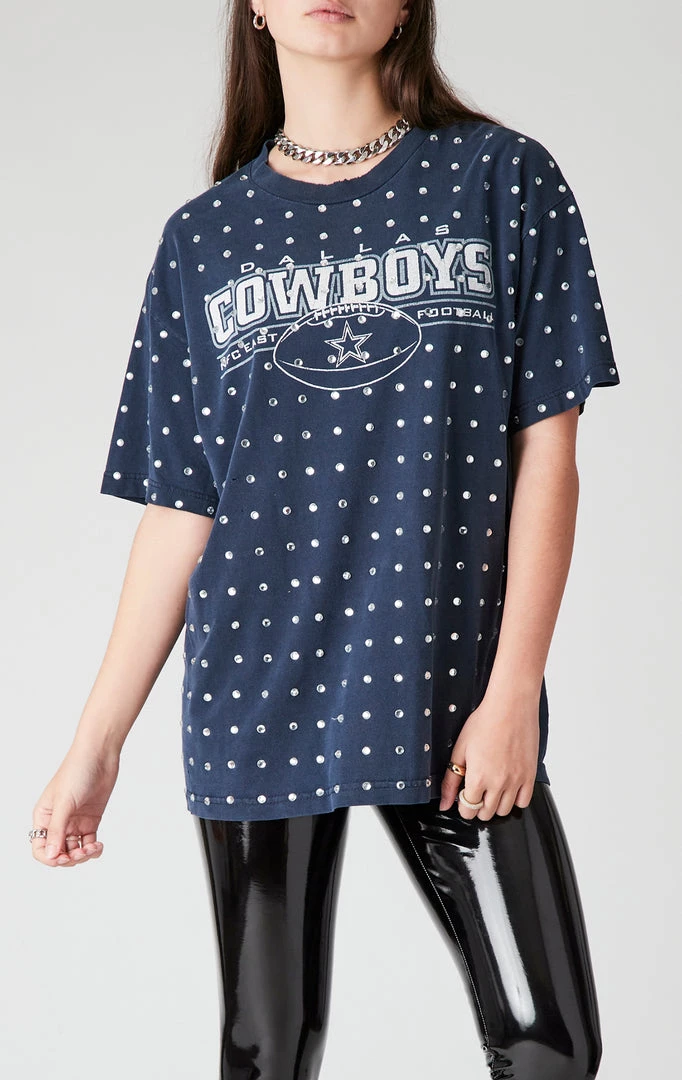 This vintage Dallas Cowboys tee has been reworked by hand by Furst of a Kind. This vintage NFL t-shirt is covered in silver stud detailing on the bodice and sleeves.