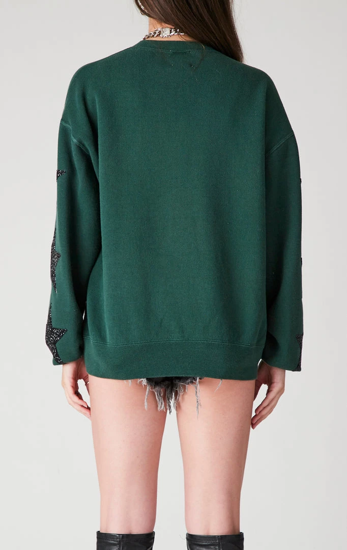 The Furst of a Kind all star. This vintage one of a kind Green Bay Packers sweatshirt was handpicked by Furst of a Kind as the perfect foundation to totally rework and bling out with black star patches on the sleeves. How could you not be starstruck? You know you want it.