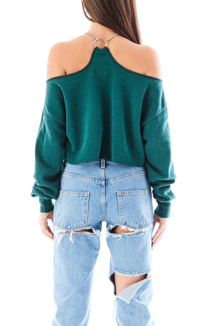 Embrace your inner baddie in this vintageĀ Green Bay Packers sweatshirt. Furst of a Kind created a whole new attitude with this reworked style. Featuring shoulder cut outs, cropped length and an insane silver chain detail at the neck.Ā We love vintage NFL sweatshirts no matter what, but this piece will make all your other vintageĀ jealous.Ā