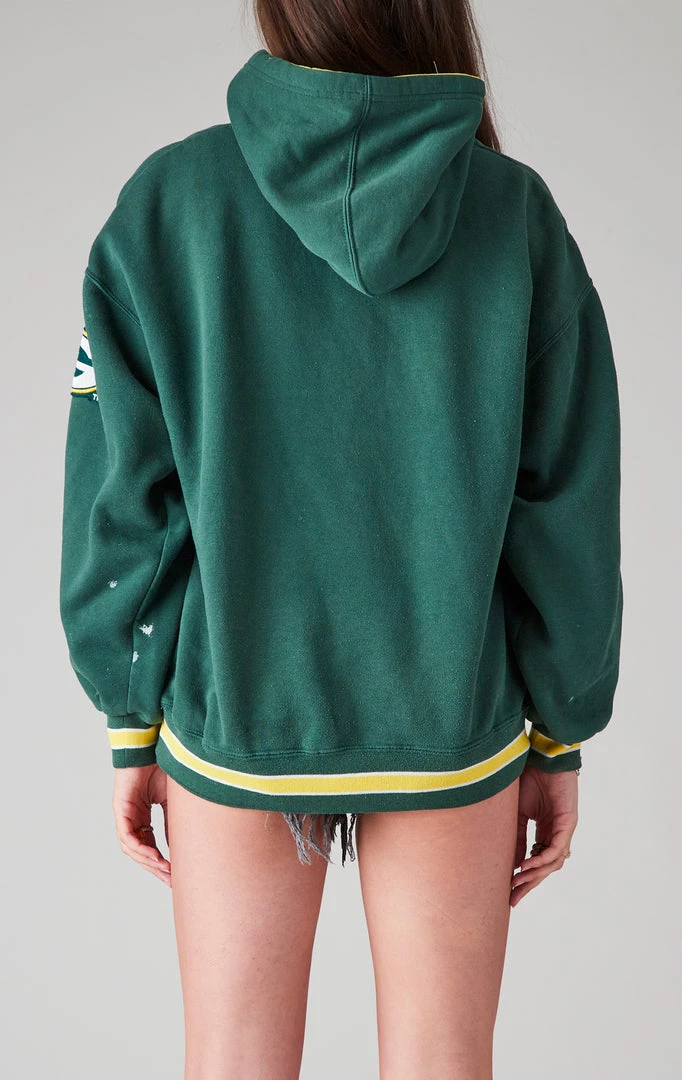 The perfect vintage Green Bay Packers hooded sweatshirt. Period. Let’s be honest, a classic vintage sports hoodie never goes out of style. This one was sourced by the Furst of a Kind team & reworked just a touch with a stonewash process to add to the effortless naturally distressed look and feel. You can really never have enough.Â