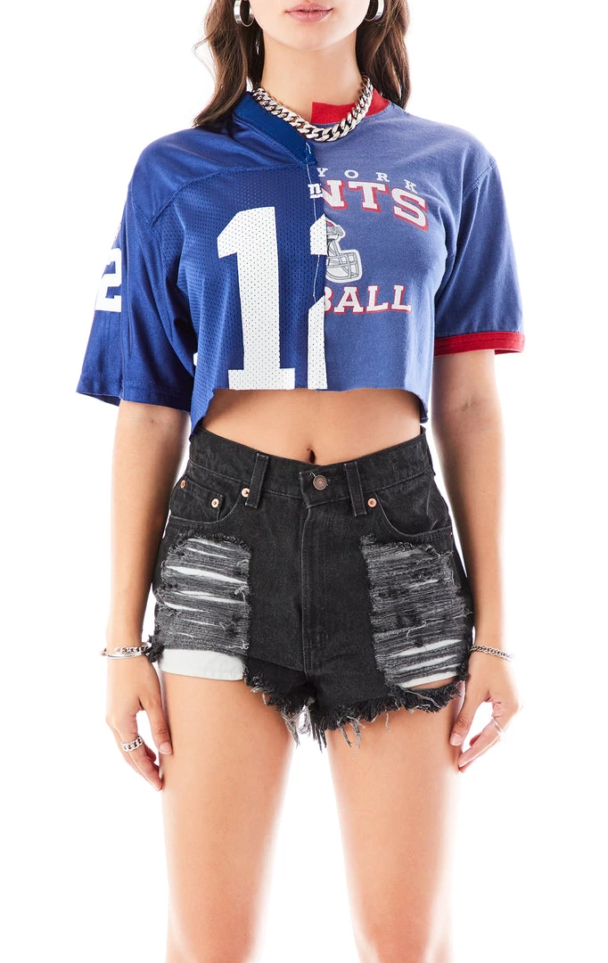 The gemini of vintage tees, this baby is two sided and we love her for it. Furst of a kind spliced together a vintage New York Giants tee on one side, with a pre-loved jersey on the right. Now throw in the perfect cropped cut and the most sustainable way to rep your team? One + One = you need it now.