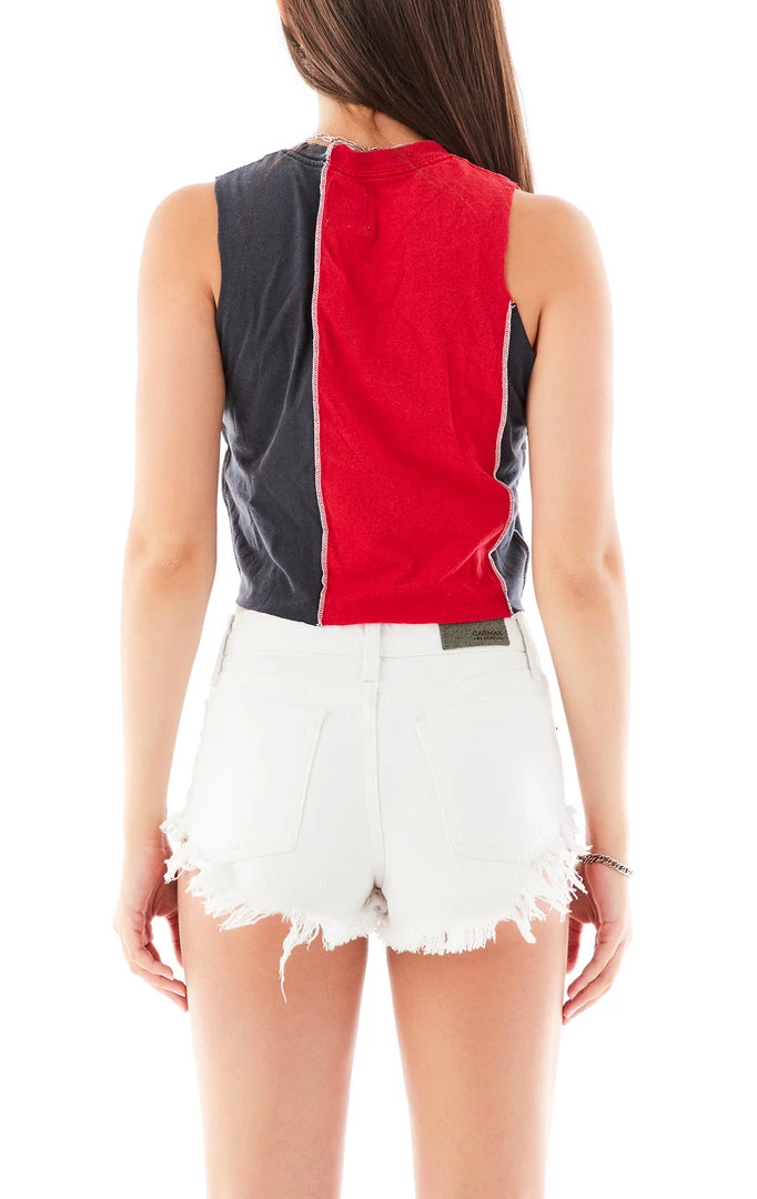 NOW TRENDING: SPLICE. The best part of Furst of a Kind is the one-of-a-kind pieces created from vintage finds. This Houston Texans vintage tank was updated by hand with an irresistible crop cut after being spliced to perfection and finished with a contrast overlock stitch. You know you want it.