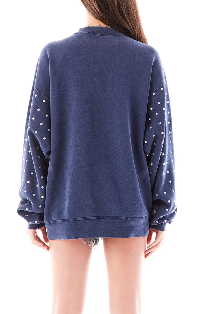 It’s all about the bling, baby. This one of a kind vintage New York Yankees sweatshirt boasts some serious sparkle. The Furst of a Kind team embellished this piece by hand, featuring Allover Rhinestone embellishment scattered across the bodice and sleeves. Dress it up or dress it down, but this beauty is meant to shine.