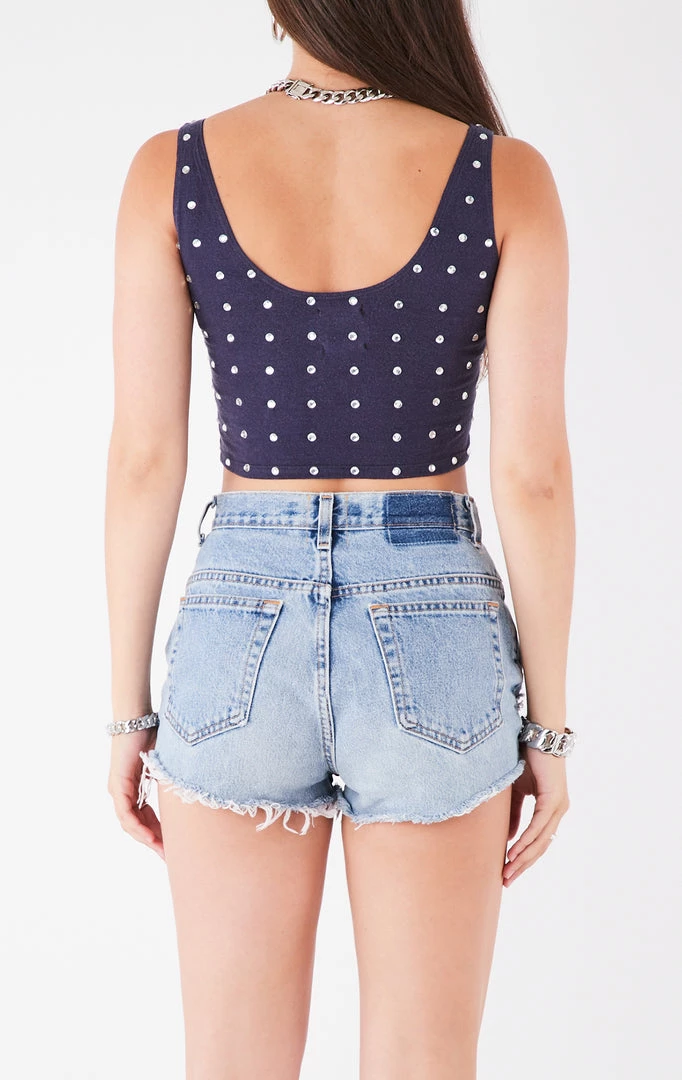 Furst of a Kind reworked this vintage Dallas Cowboys tee into a cropped tank. Features allover rhinestone detailing on the front and back.Â