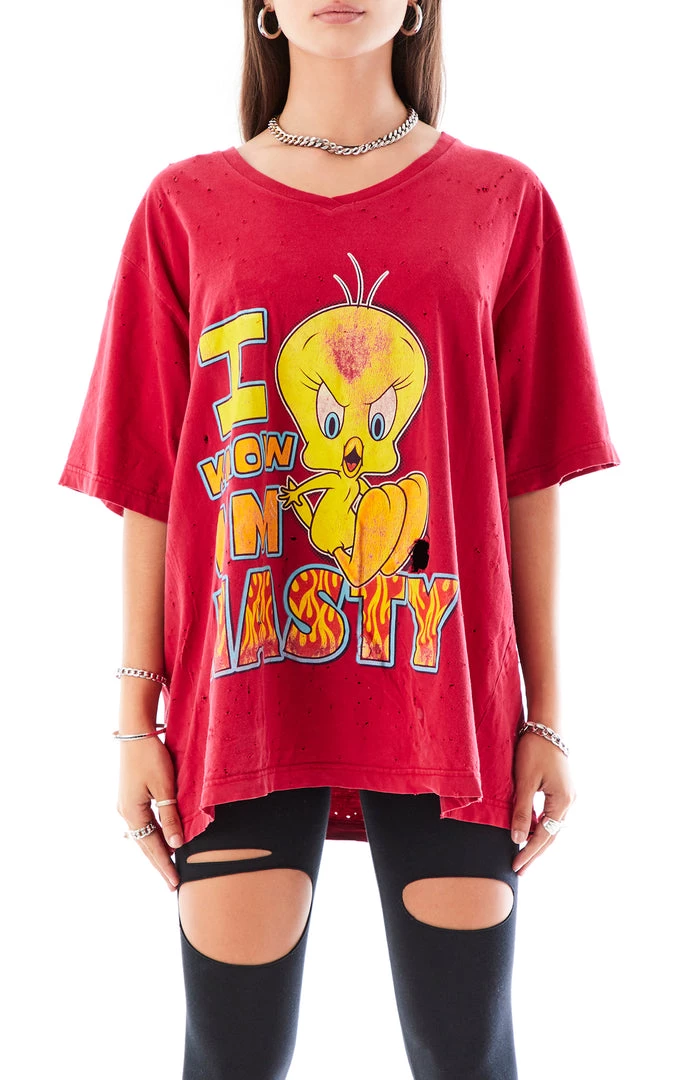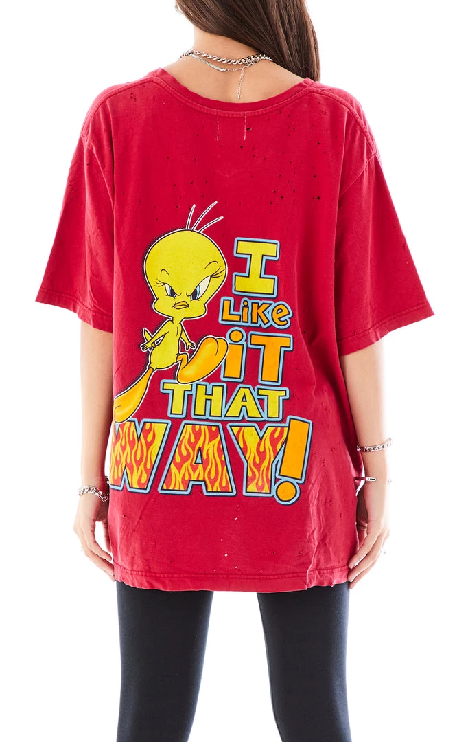 Seriously, what’s better than cartoons & vintage? Furst of a Kind hand sourced this vintage Tweety Bird tee and turned your nostalgic childhood memories into a vintage top you can wear every day. Want some added luxury? This piece has been stonewashed to ensure a natural distressing and vintage fabric feel. We love this for you- time to start collecting.