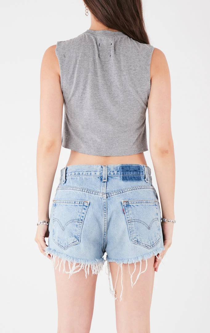 This vintage Vanderbilt University chain lace up tee is a truly iconic Furst of a Kind fit. Features a sleeveless cut, the perfect crop length and lace up detailing with silver chain. You can lace it tight or let it loose.