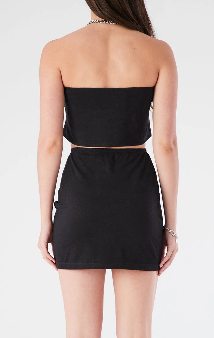 This one-of-a-kind set was designed by Furst of a Kind from a vintage New York Mets tee. Reworked into a cropped chain neck halter top and skirt.