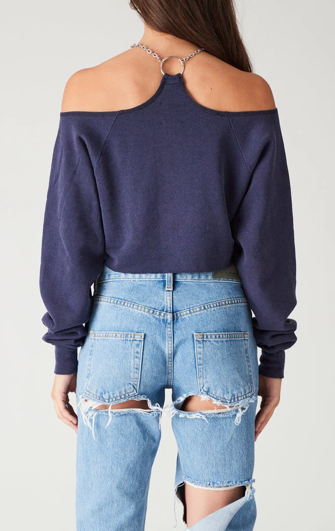 Embrace your inner baddie in this vintage Auburn University sweatshirt. Furst of a Kind created a whole new attitude with this reworked style. Featuring shoulder cut outs, cropped length and an insane silver chain detail at the neck. We love vintage college sweatshirts no matter what, but this piece will make all your other vintage jealous.