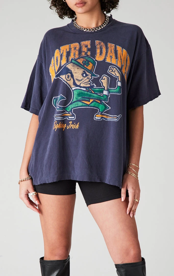 Don’t go here? Doesn’t matter. A Furst of a Kind vintage college tee is a staple to add to your collection no matter what. This University of Notre Dame vintage tee has been stonewashed for a worn-in feel and naturally distressed look. a total A+.