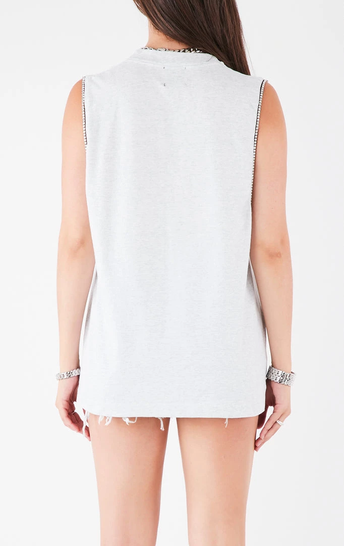 This vintage Indiana University tee was sourced and reworked in Los Angeles by Furst of a Kind with a dramatic sleeveless cut and lined with rhinestone trim.