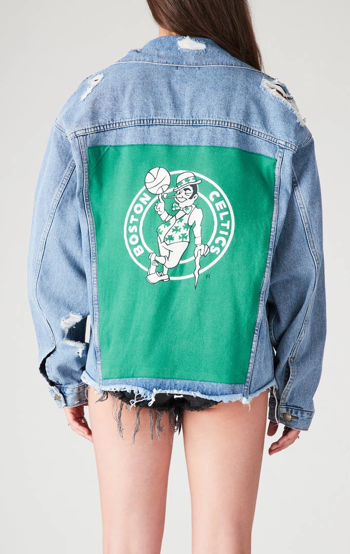 It’s all about the back detail on this one of a kind repurposedĀ blueĀ denim jacket. Furst of a Kind added a vintage Boston CelticsĀ graphic on the back and we are officially obsessed.Ā