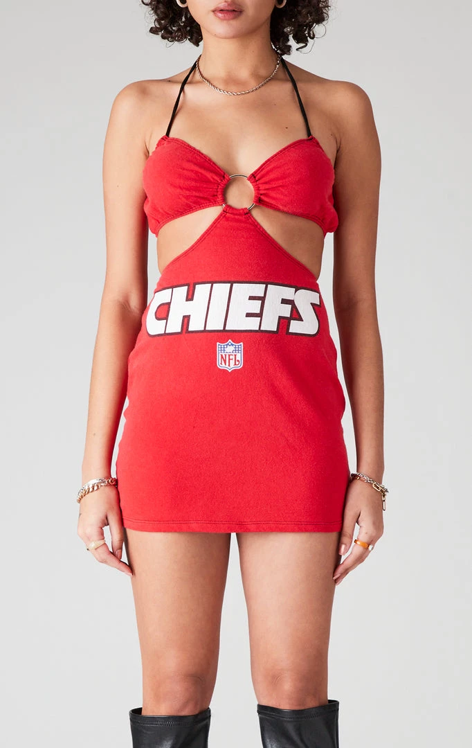 Furst of a Kind took an oversized vintage Kansas City Chiefs tee and reinvented its whole purpose, reworking it into the ultimate head-turning fit with fresh double side cut outs and a halter neck. There’s no comparing this dress, your other vintage could NEVER.