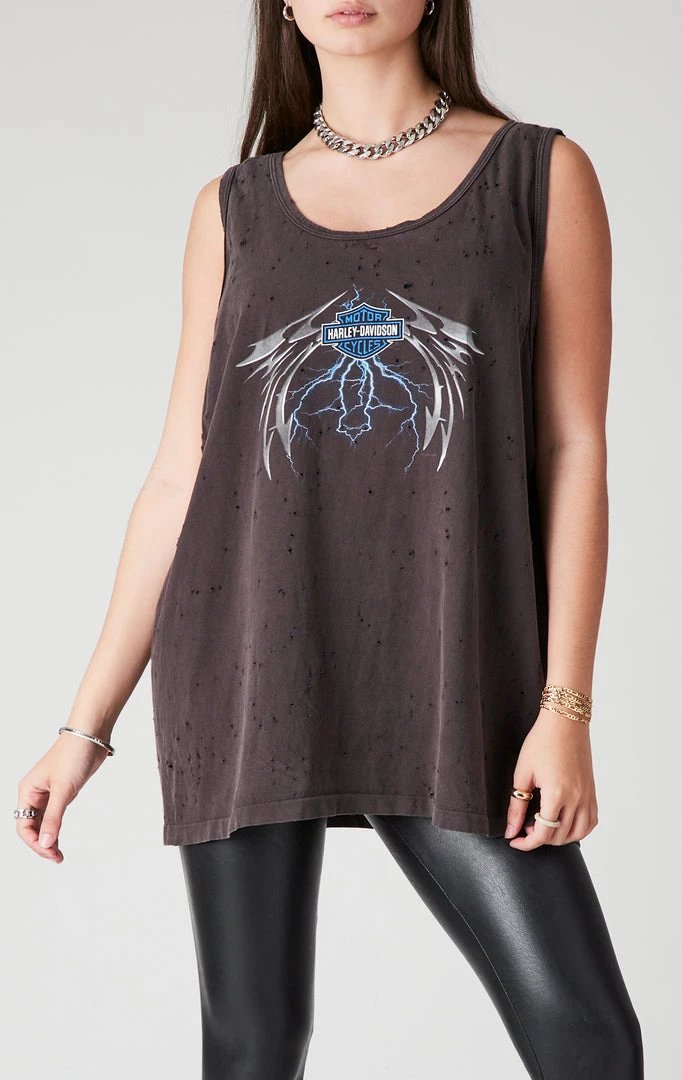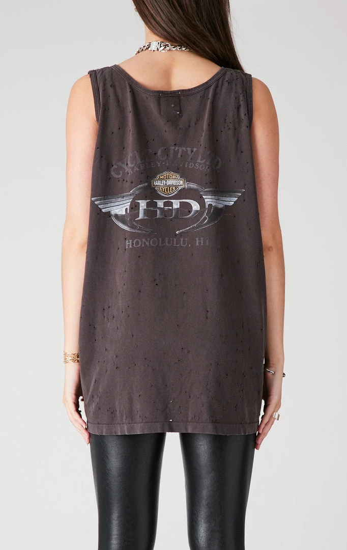 One-of-a-kind vintage Harley Davidson tank top. Furst of a Kind reworked this vintage tank by putting it through a stone washing process, giving it the ultimate soft vintage feel.