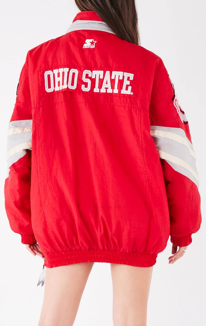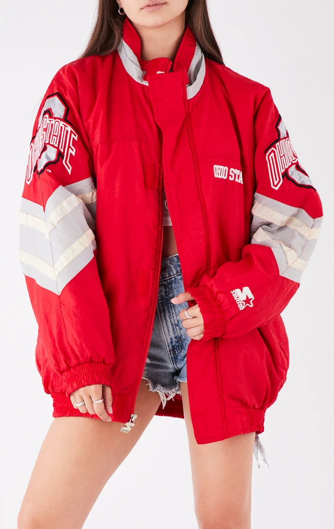 This one-of-a-kind vintage Ohio State University heavy zip up windbreaker jacket is the layering piece you need to keep you looking cool and feeling cozy. Sourced by Furst of a kind in Los Angeles.