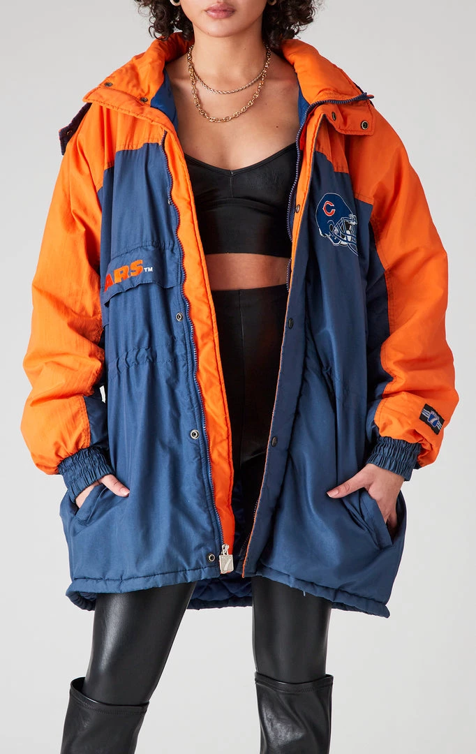It’s about to be brick outside, don’t let your look suffer. This one of a kind Chicago Bears vintage heavy zip up windbreaker jacket is the layering piece you need to keep you looking cool and feeling cozy. Furst of a kind knows where it’s at. You’re always on the hunt for the perfect vintage jacket, right? You see it, you like it, you want it, you got it.