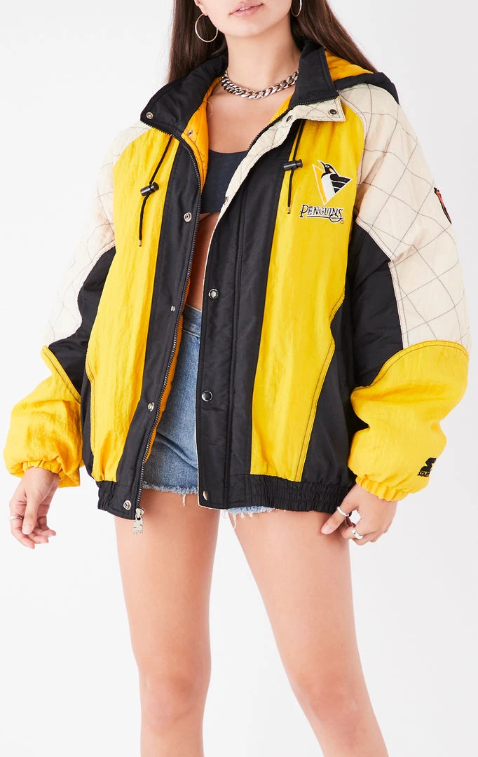 This one-of-a-kind vintage Pittsburgh Penguins heavy zip up windbreaker jacket is the layering piece you need to keep you looking cool and feeling cozy. Sourced by Furst of a kind in Los Angeles.