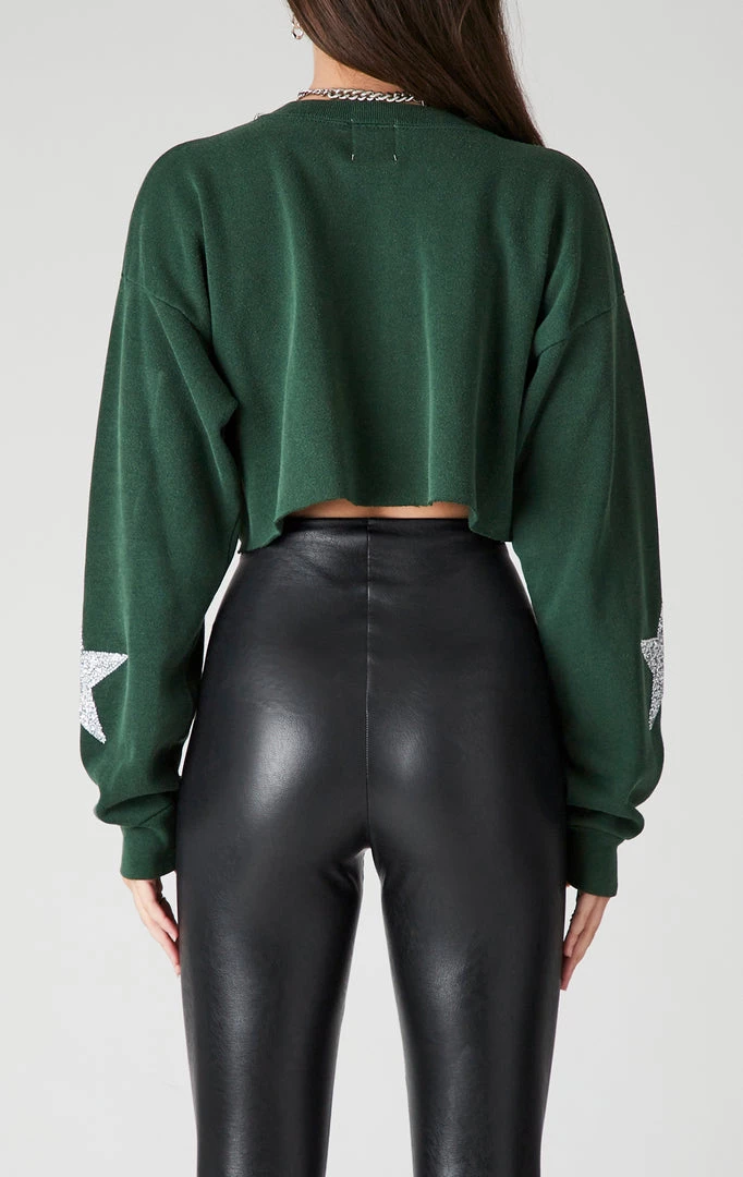 Furst of a Kind has taken their signature star patches and placed them on this cropped vintage Green Bay Packers sweatshirt. This vintage sweatshirt is a total triple threat- college graphic, silver star patches, and the perfect cropped length. It doesn’t get much better than that, so make it yours before it’s gone.