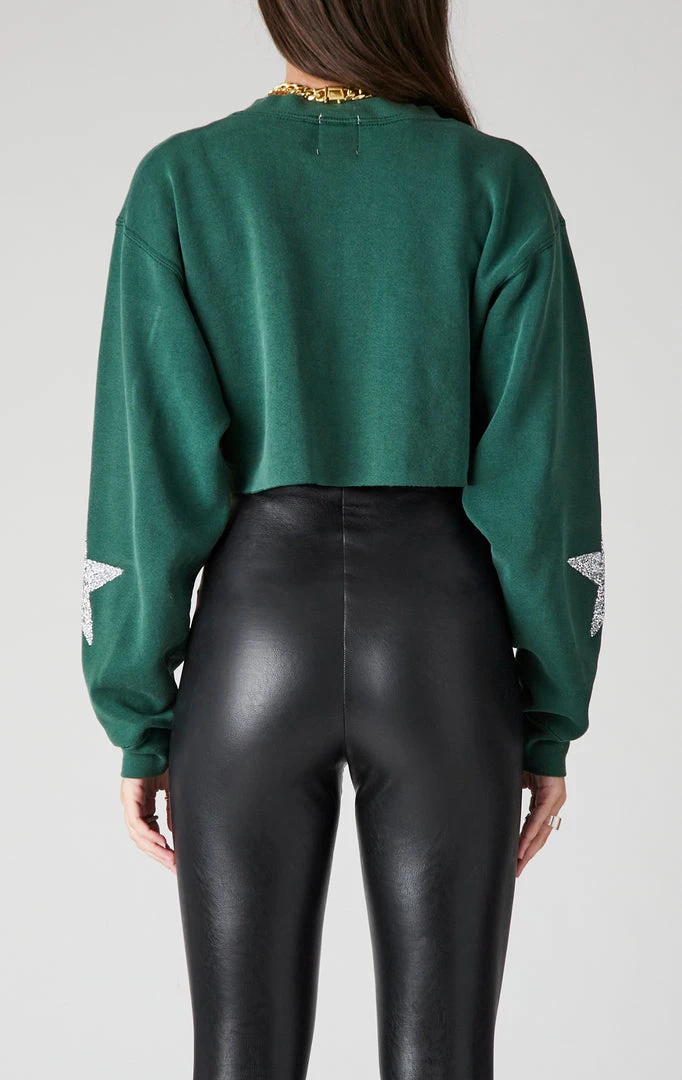 Furst of a Kind has taken their signature star patches and placed them on this cropped vintage Green Bay Packers sweatshirt. This vintage sweatshirt is a total triple threat- college graphic, silver star patches, and the perfect cropped length. It doesn’t get much better than that, so make it yours before it’s gone.