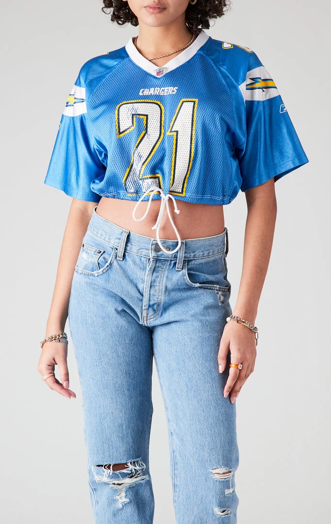 Cinch that waist, sweetie. You’re going to love the fit of this Vintage Los Angeles Chargers Jersey. This top was reworked by Furst of a Kind with a cropped cut and functional drawstring at the hem. Sporty & sustainable, say less.