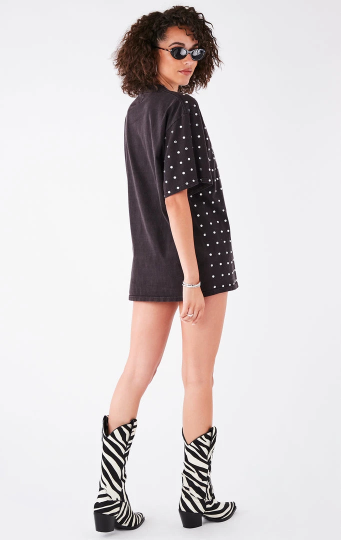 This vintage Oakland Raiders tee was reworked by hand by Furst of a Kind. This t-shirt is covered in silver rhinestone detailing on the bodice and sleeves.