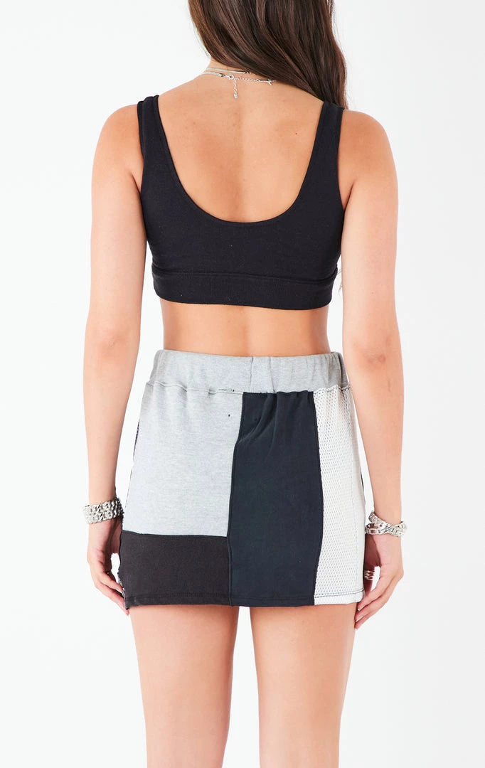 This vintage Las Vegas Raiders skirt was hand sourced, sewn & spliced by Furst of a Kind. Features assorted vintage graphic inserts.