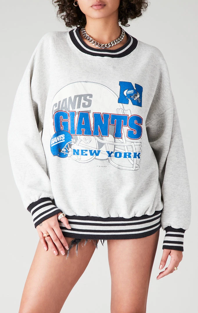 THE perfect vintage New York Giants sweatshirt. Period. Let’s be honest, a classic sports vintage sweatshirt never goes out of style. This one was sourced in Los Angeles by the Furst of a Kind team & reworked just a touch to maintain its original integrity. It features stone washing for an ultra worn-in, effortless look. You can really never have enough.