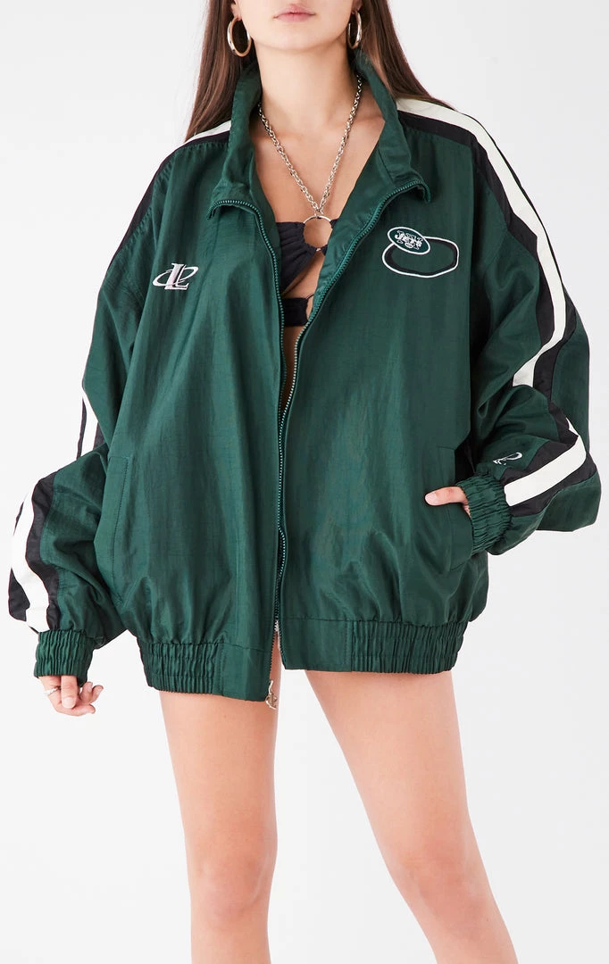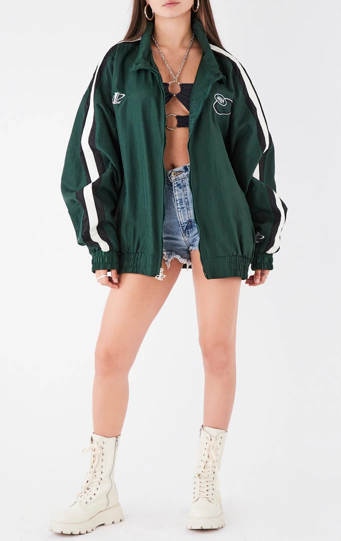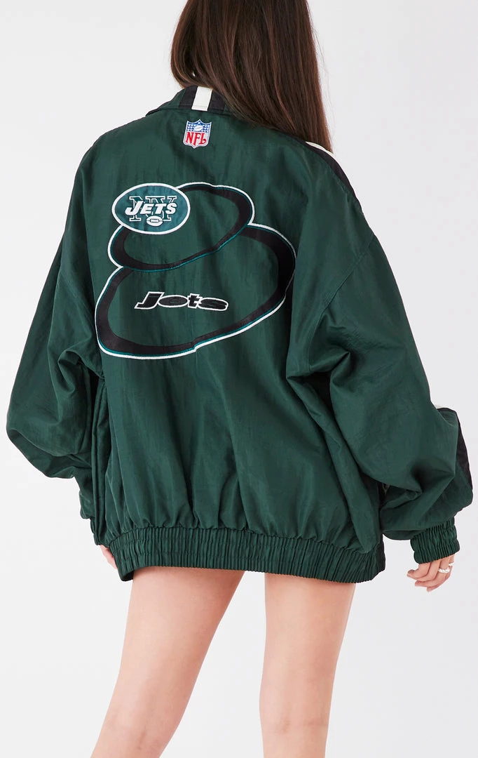 This one-of-a-kind vintage New York Jets zip up jacket is a must-have in your vintage collection. Furst of a Kind sourced this sustainable style for its perfect shape and kept it just the way it was found to preserve its true vintage qualities.