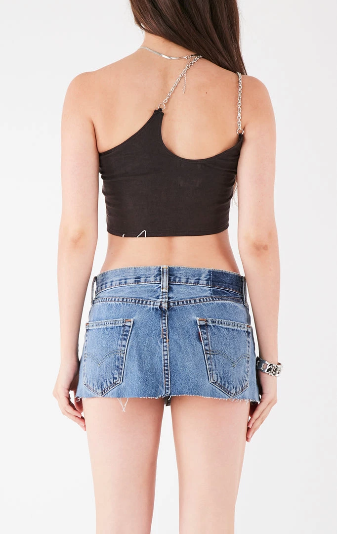 Furst of a Kind took this vintage New York Mets tee and reworked it into a one shoulder tank top. This tank is complete with a one-shoulder cut out, cropped hem and double chain straps.