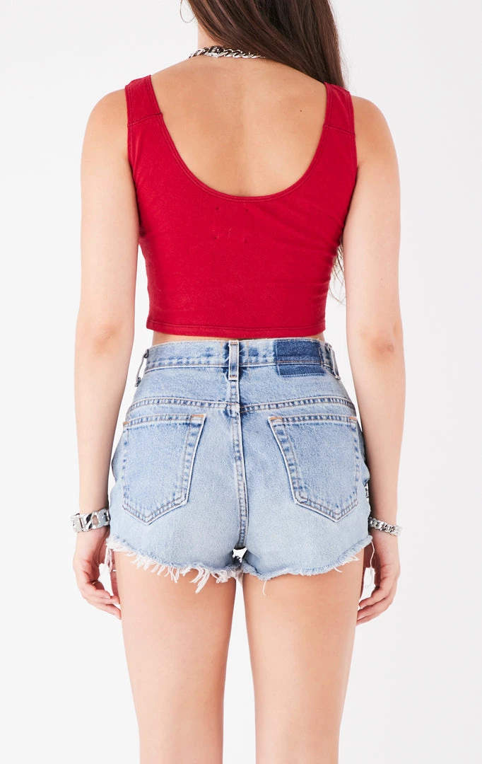 Furst of a Kind reworked this vintage San Francisco 49ers tee. Features a tank top shape, cropped cut and curved ladder cut out with safety pin detail.