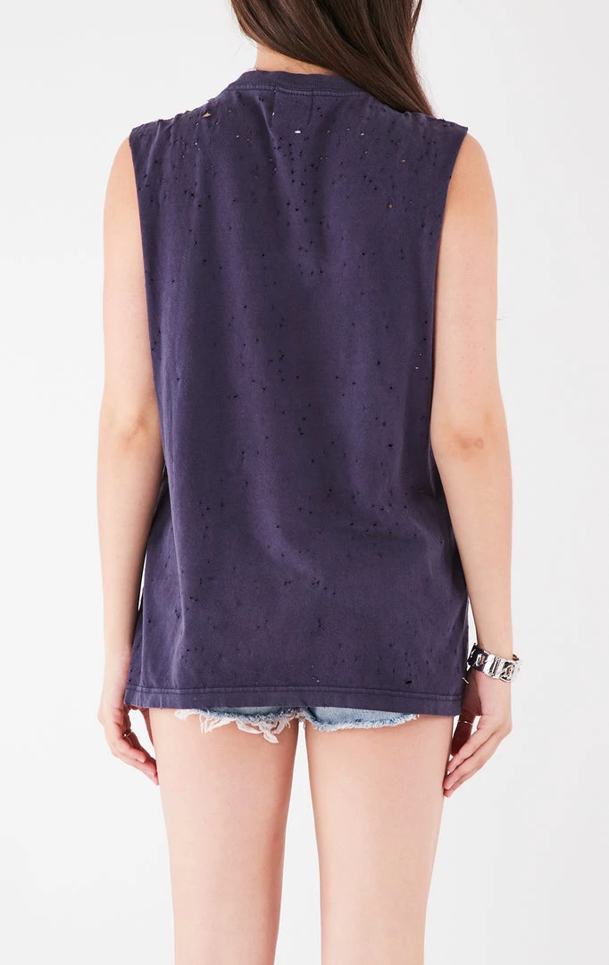 This vintage Duke University tee was sourced and reworked by Furst of a Kind in Los Angeles with a dramatic sleeveless cut and safety pin detailing.