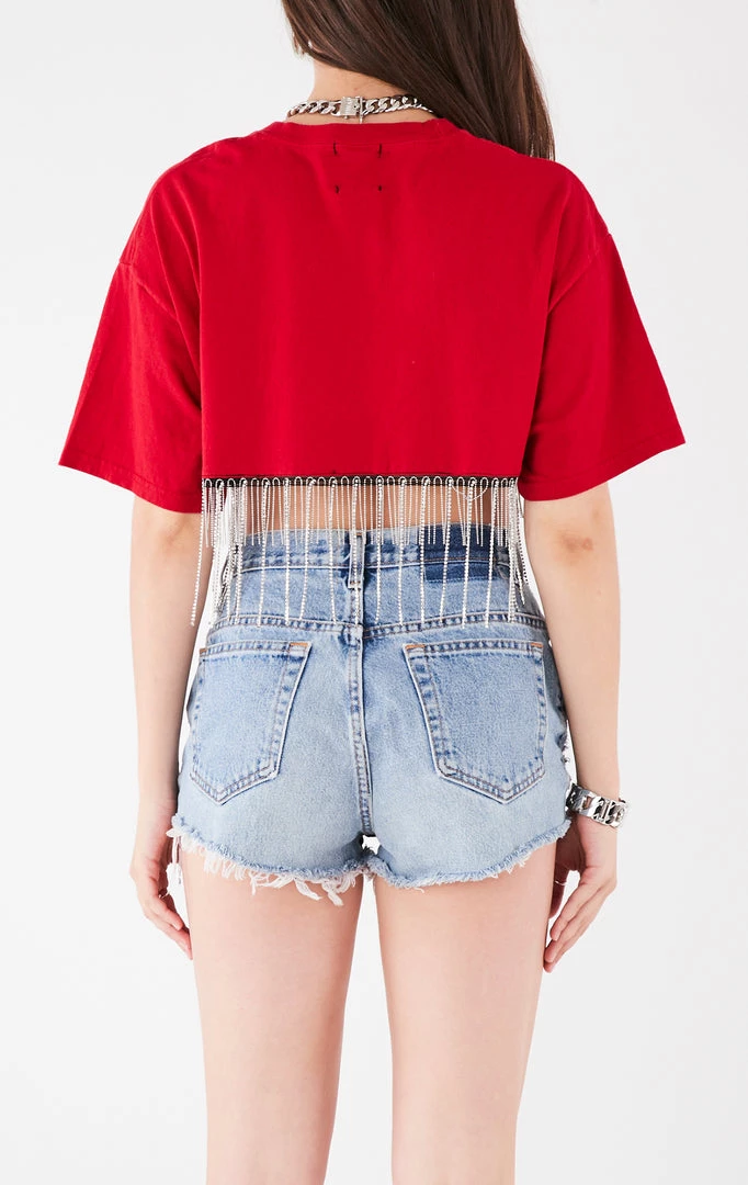 This one-a-kind vintage University of Alabama tee was reworked by Furst of a Kind. Upcycled with a cropped cut and rhinestone fringe at the hem.