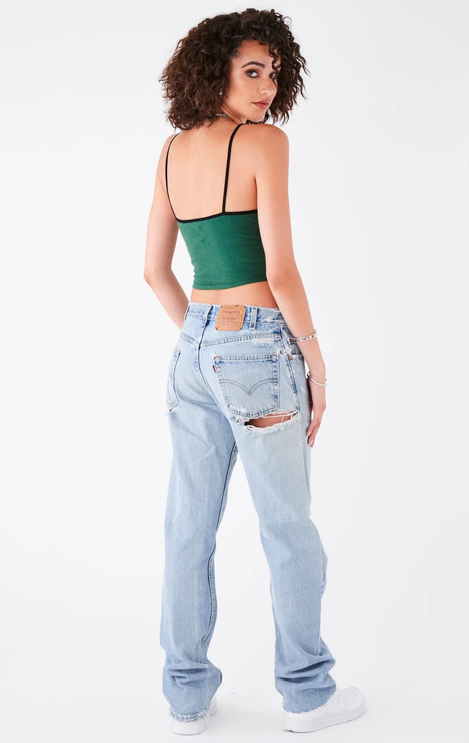 This vintage University of Miami tee was reworked into a tank top by Furst of a Kind. Features a crop shape and rhinestone fringe.