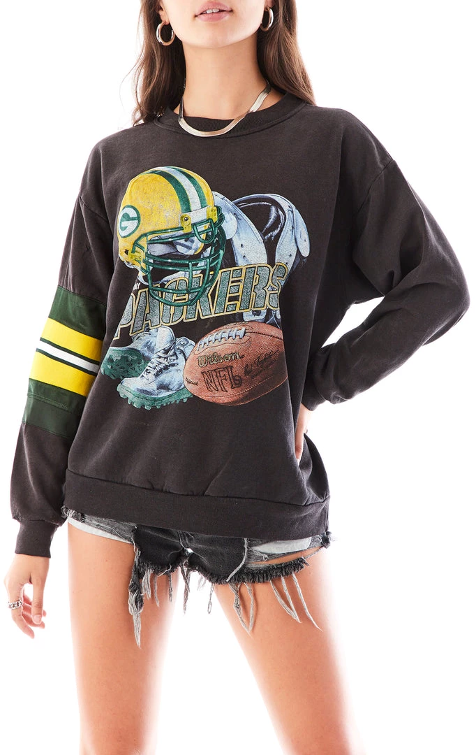Wear your team on your sleeve. Furst of a Kind spliced the Green Bay PackersĀ vintage jersey sleeveĀ into the arm of this sick one of a kind sweatshirt. Featuring a pullover crew neck shape and oversized fit, this isĀ a total no brainer.Ā Only 1 available,Ā double tap that add to cart.Ā