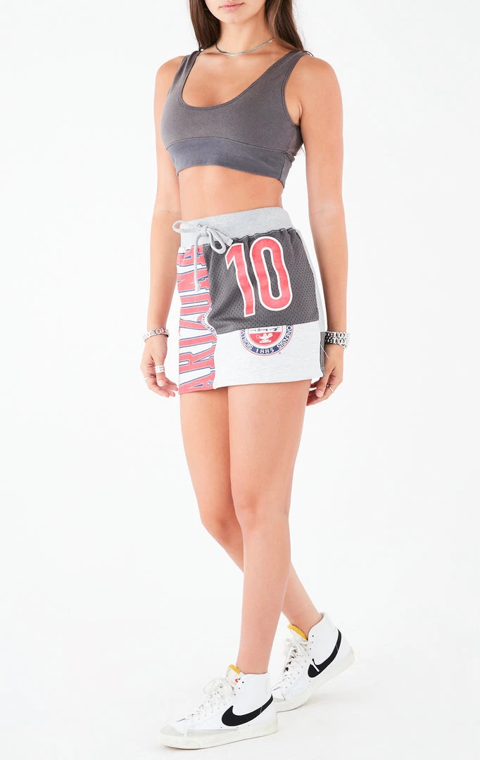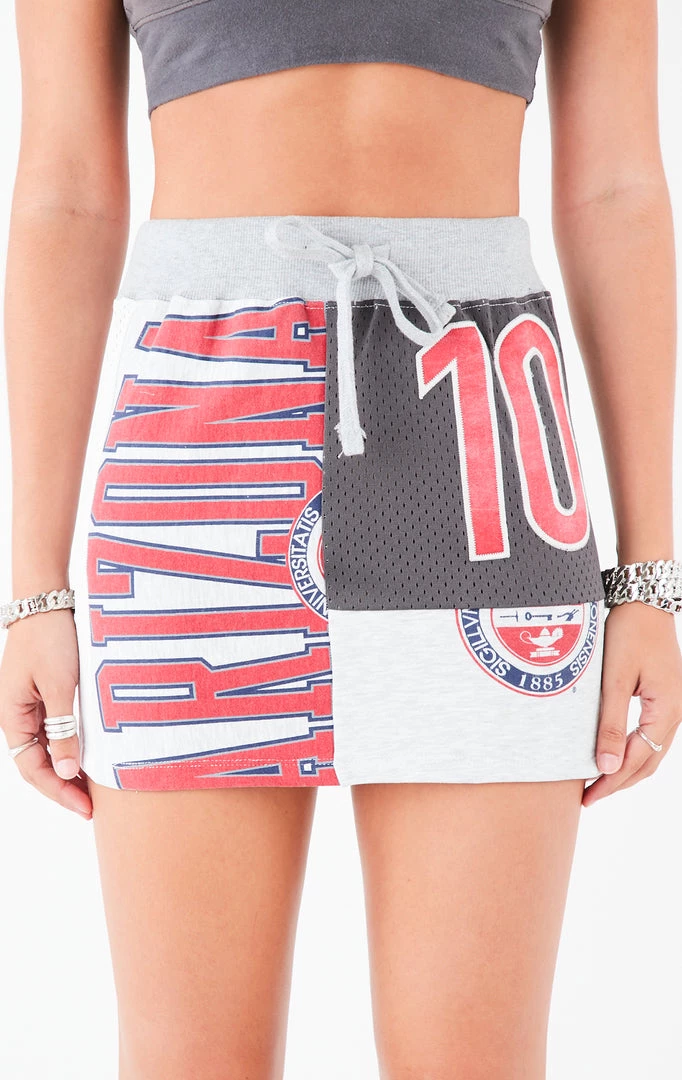 This vintage University of Arizona skirt was hand sourced, sewn & spliced by Furst of a Kind. Features assorted vintage graphic inserts.