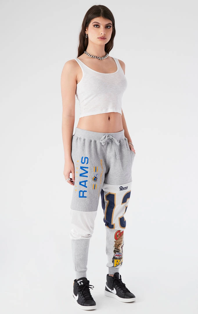 You need these reworked sweatpants from Furst of a Kind. Hand sourced, sewn & spliced, these vintage St. Louis Rams patchwork sweatpants are the epitome of cool. Featuring assorted vintage graphic inserts in a relaxed fit silhouette with pockets and drawstring closure.