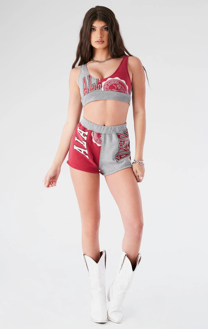 Furst of a Kind took two vintage pullover sweatshirts and spliced them together into this one-of-a-kind tank and short set. This University of Alabama set is sustainable and fashionable.