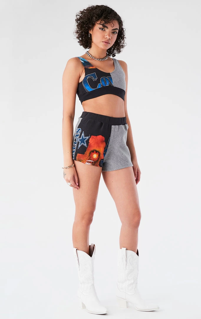 Furst of a Kind took two vintage pullover sweatshirts and spliced them together into this one-of-a-kind tank and short set. This Dallas Cowboys set is sustainable and fashionable.