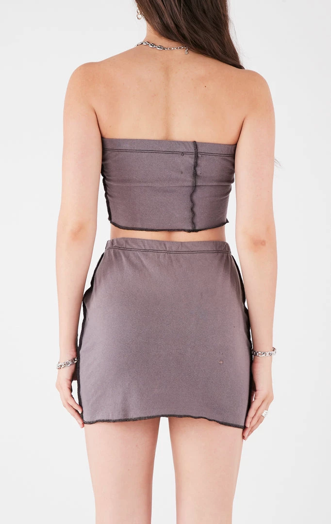 This one-of-a-kind set was crafted from vintage Jack Daniels tee pieces sourced all over the USA. Furst of a Kind reworked them and spliced them together creating a two-piece set with a fit to flatter.