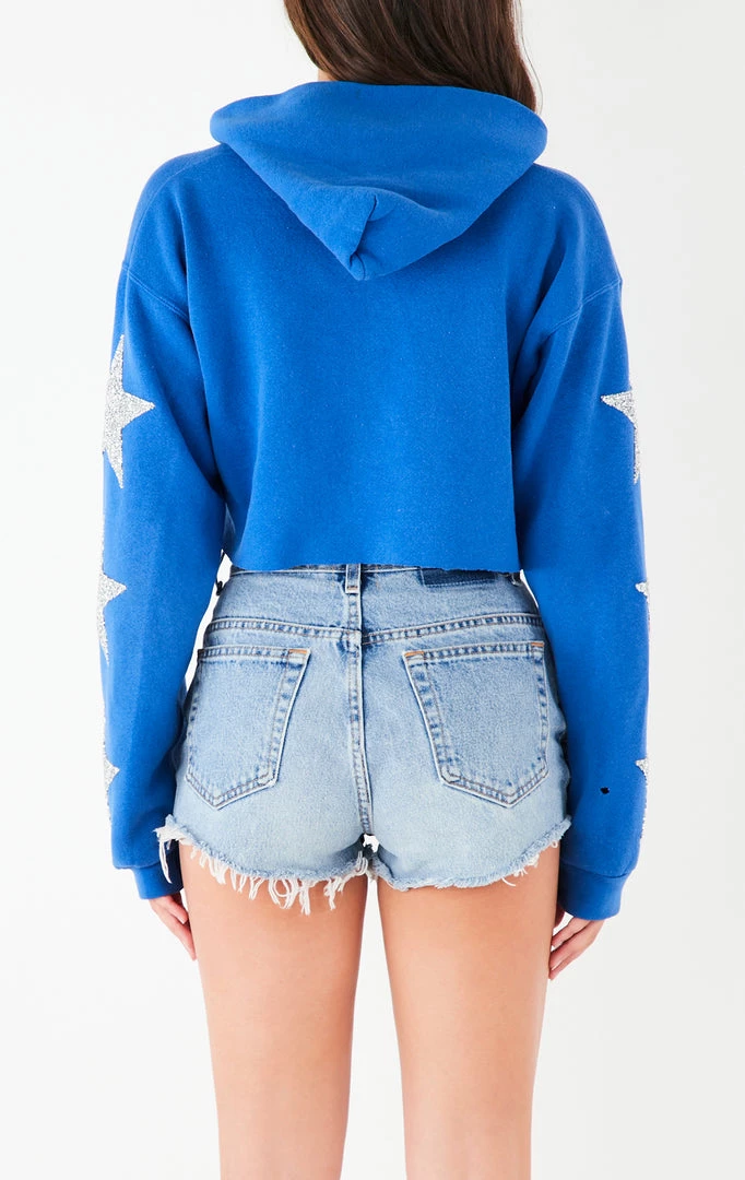 Upcycled from a vintage Tampa Bay Lightning hoodie, Furst of a Kind reworked this style with a cropped cut and silver star patch embellishment down both sleeves.