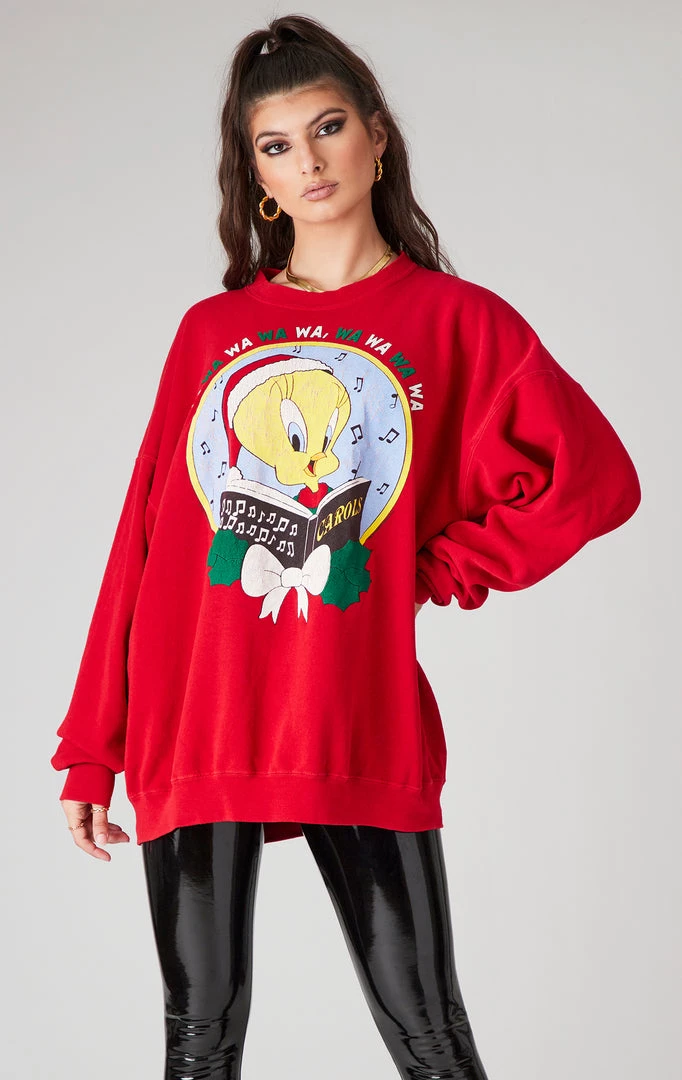 What time is it? Toon time. Furst of a Kind hand sourced this perfect vintage Tweety Bird cartoon sweatshirt to satisfy all of your Saturday morning nostalgia. This one was found in Los Angeles by the Furst of a Kind team & reworked just a touch to maintain its original integrity. It features stone washing for an ultra worn-in, effortless look. You know what to do.