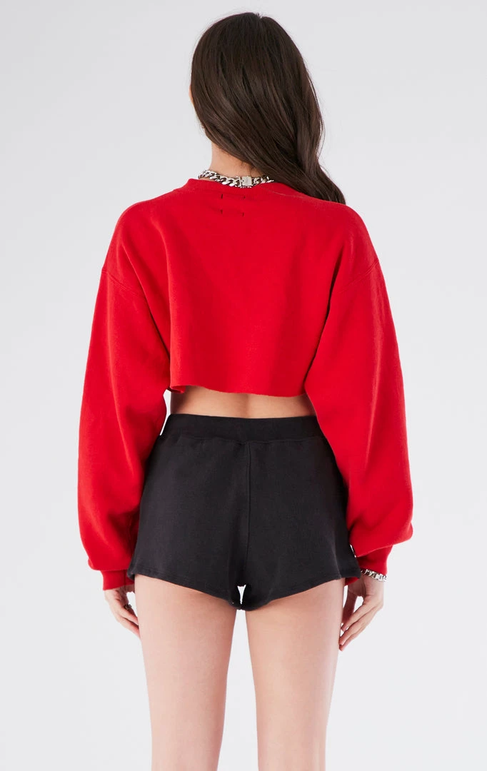 This one-of-a-kind set was reworked by Furst of a Kind from a vintage Ohio State University sweatshirt. Redesigned into a two piece set featuring a cropped sweatshirt paired with a spliced sweatshirt short.Â