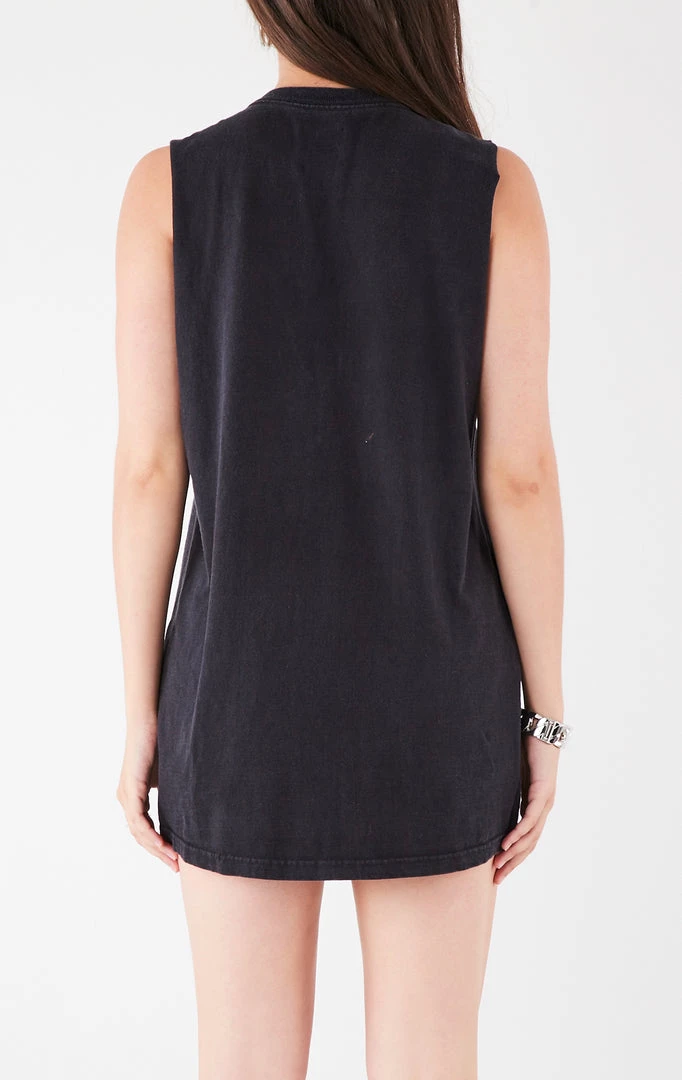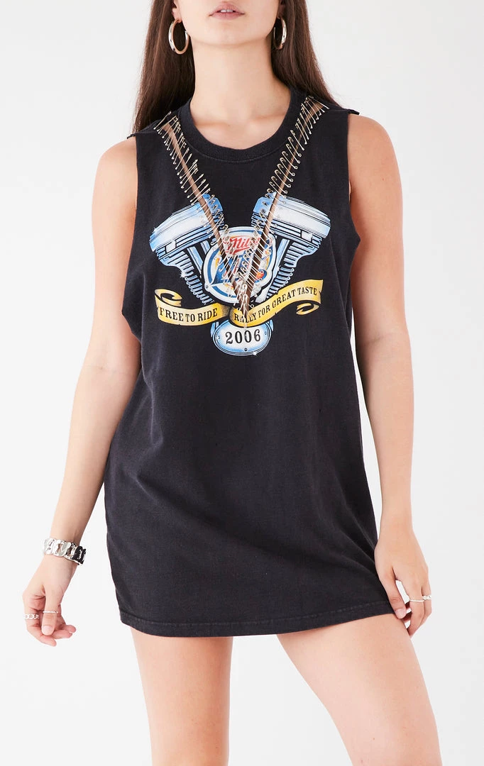 Furst of a Kind reworked this vintage Miller Lite tee. Features a sleeveless cut and v cut out with safety pin detail.
