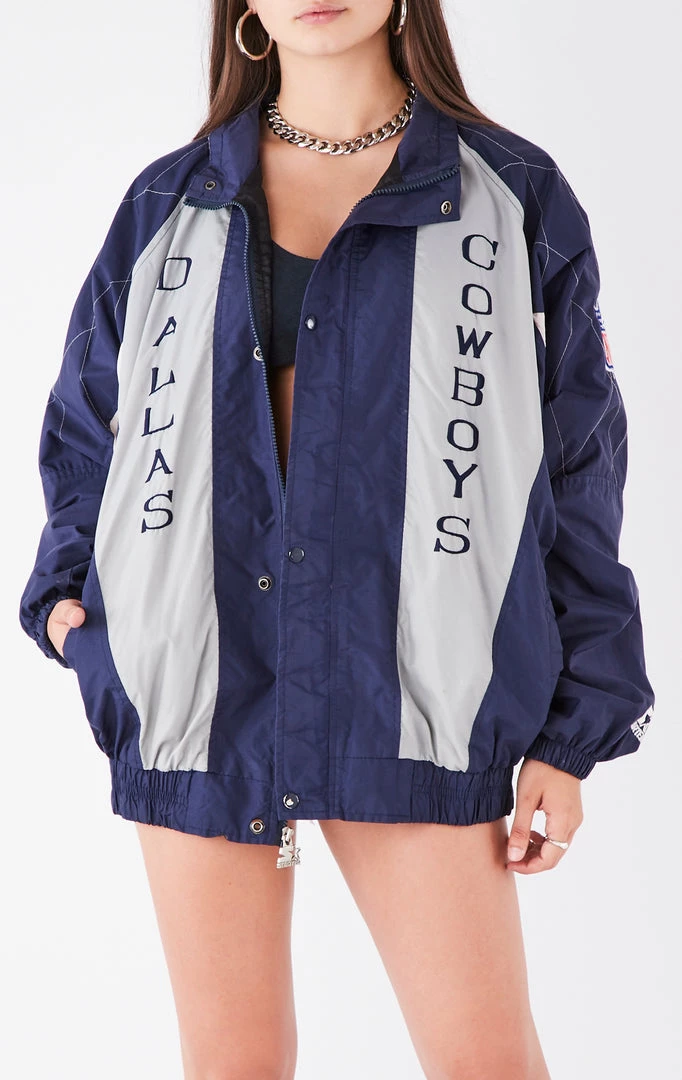 This one-of-a-kind vintage Dallas Cowboys zip up jacket is a must-have in your vintage collection. Furst of a Kind sourced this sustainable style for its perfect shape and kept it just the way it was found to preserve its true vintage qualities.
