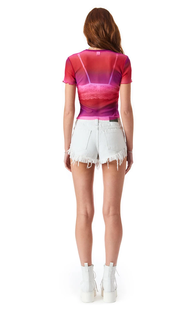• Only Hearts Ombre Tulle Short Sleeve Tee in Poppy