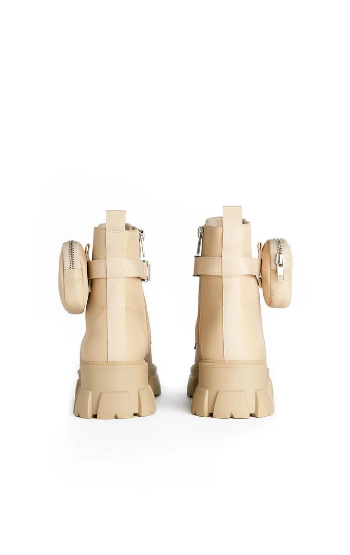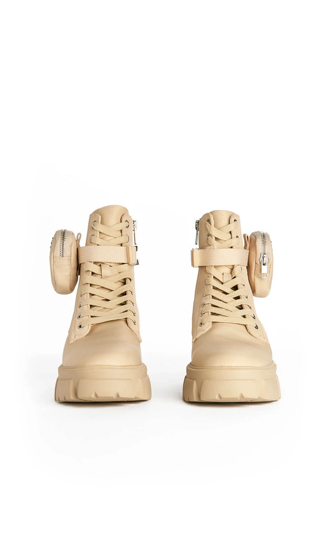 Thora-P Lug Sole Utility Boot With Removable Ankle Pouch in Tan by Steve Madden.