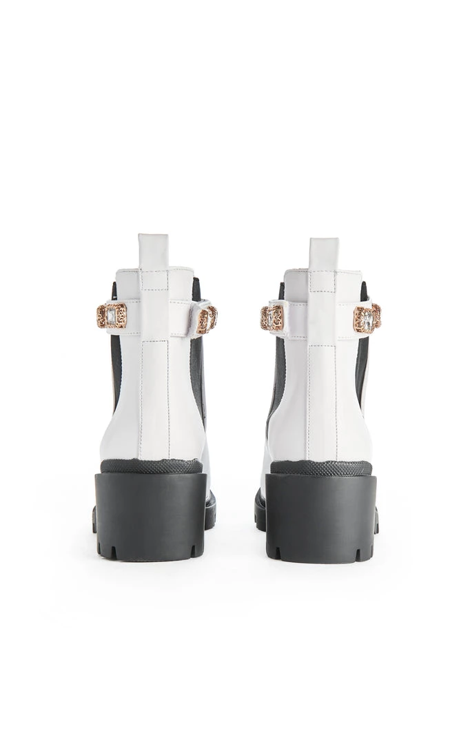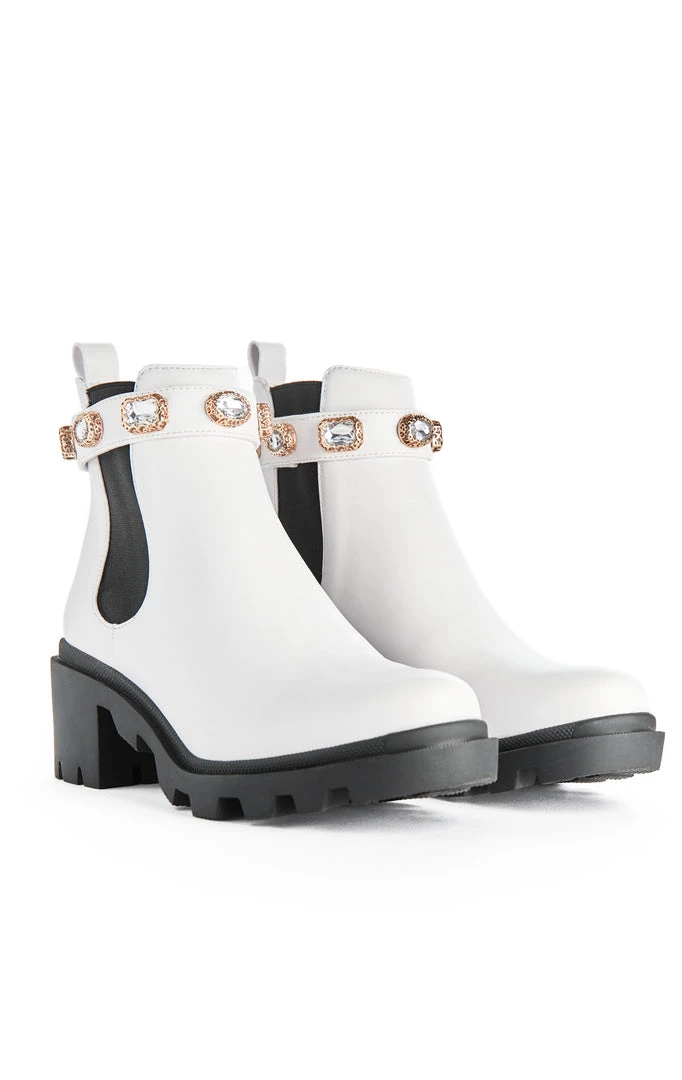 It’s the details for us. The Amulet Chelsea Boot With Rhinestone Strap in White by Steve Madden is the boot we can’t get enough of.