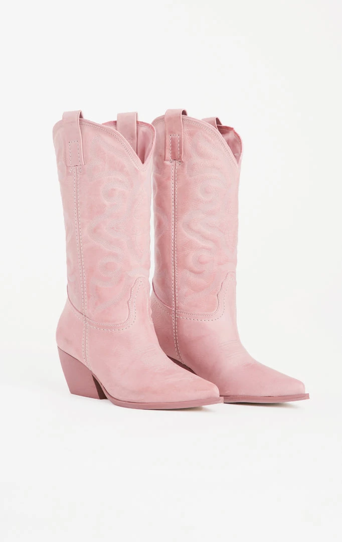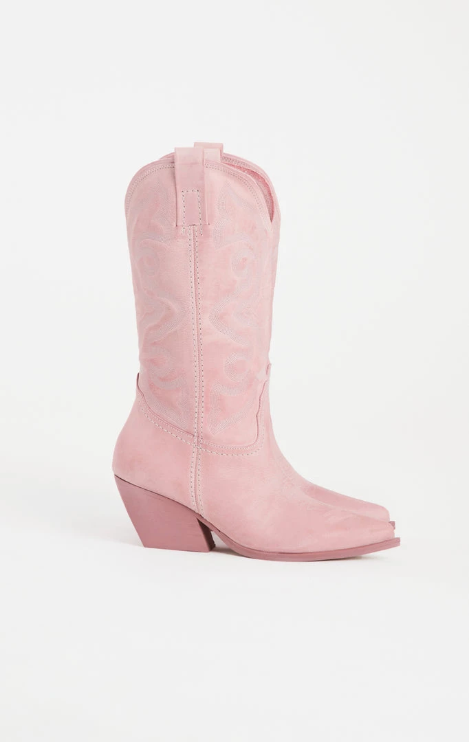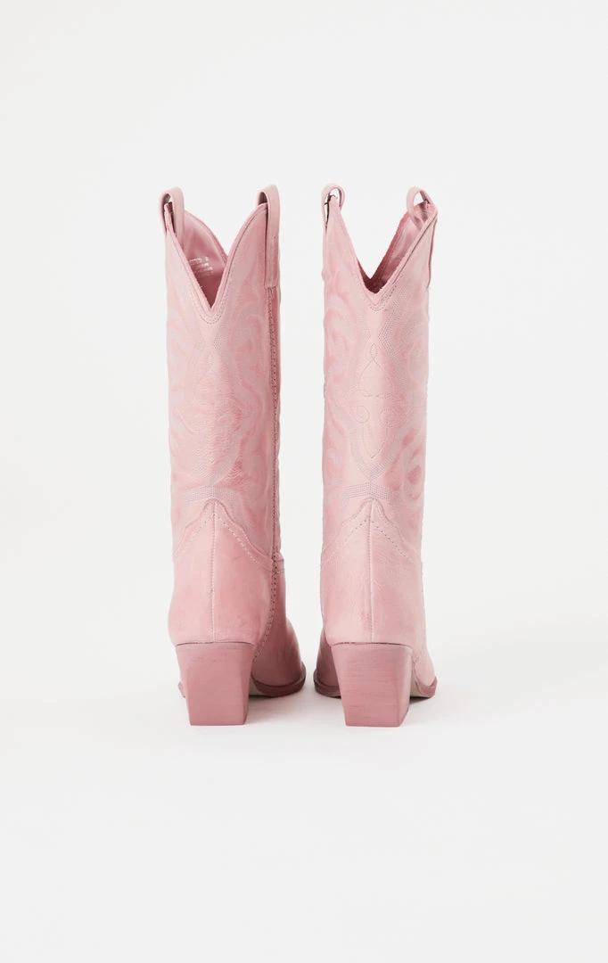 West Cowboy Boot in Pink Leather by Steve Madden. Features a 2.75″ heel.